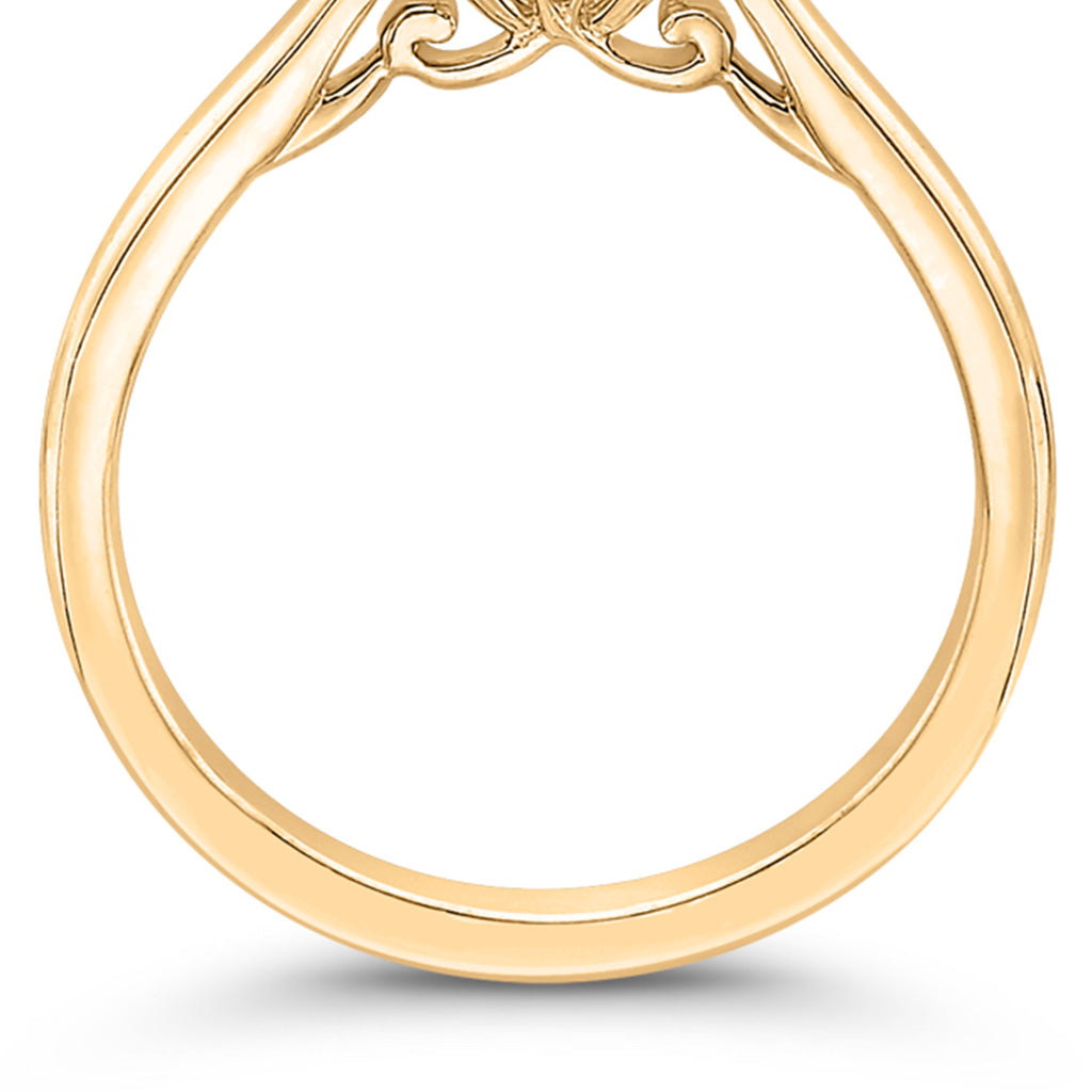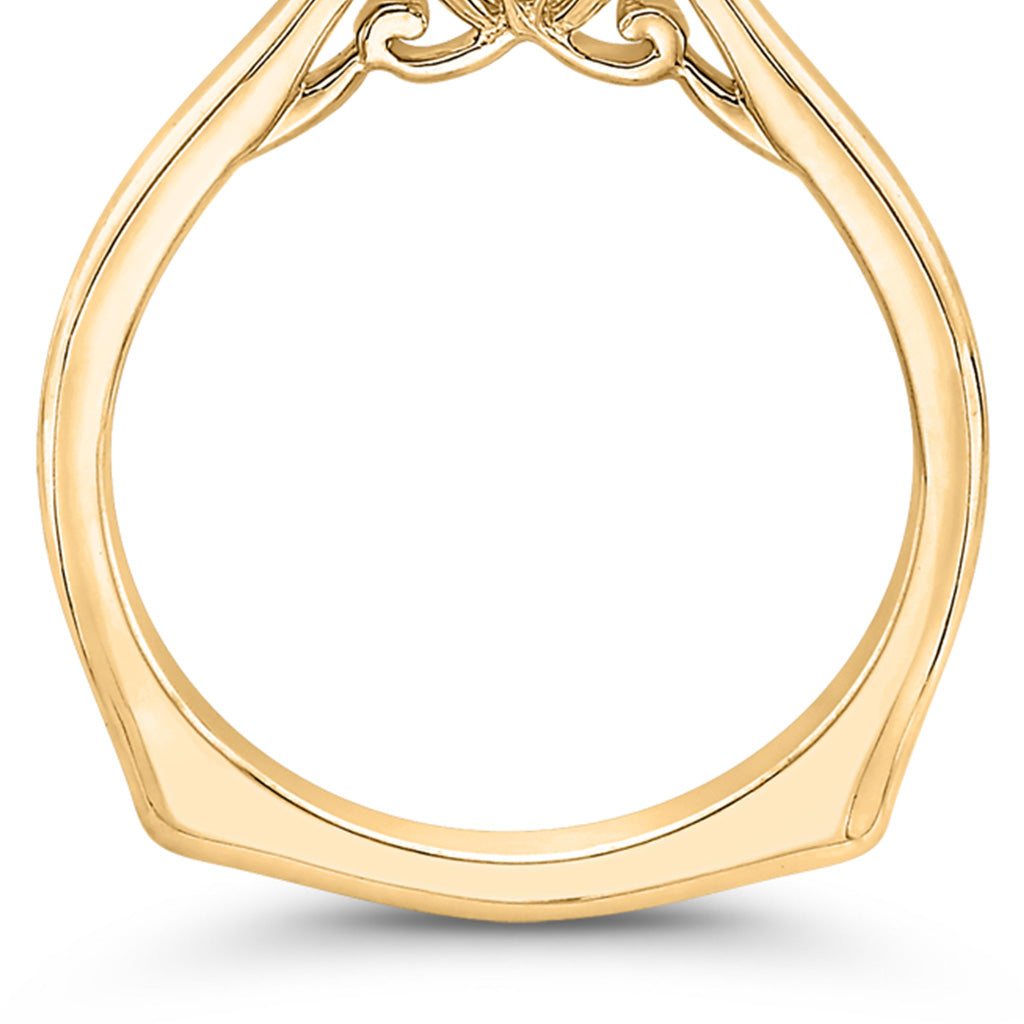 The European shank features a flattened bottom section giving a square impression. This can help prevent the ring from spinning around the finger. Most of our engagement rings can be made with a European shank.